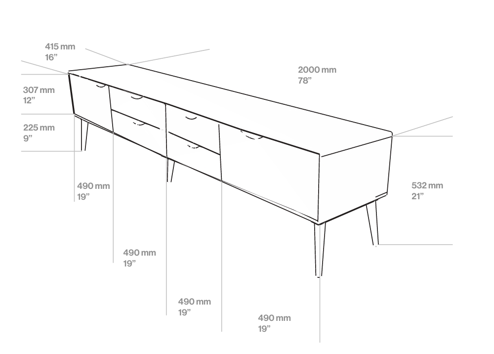 The Primo Bassa lowboard 1800 embodies the same understated elegance, now enhanced by an even more generous width for greater presence and storage capacity. Its clean lines and integrated handles maintain a refined aesthetic, perfectly complementing modern interiors. The extended length provides ample surface area for larger media setups or decorative arrangements. As with other models in the series, the removable legs allow effortless adaptation between a striking statement piece and a sleek, space-efficient configuration.